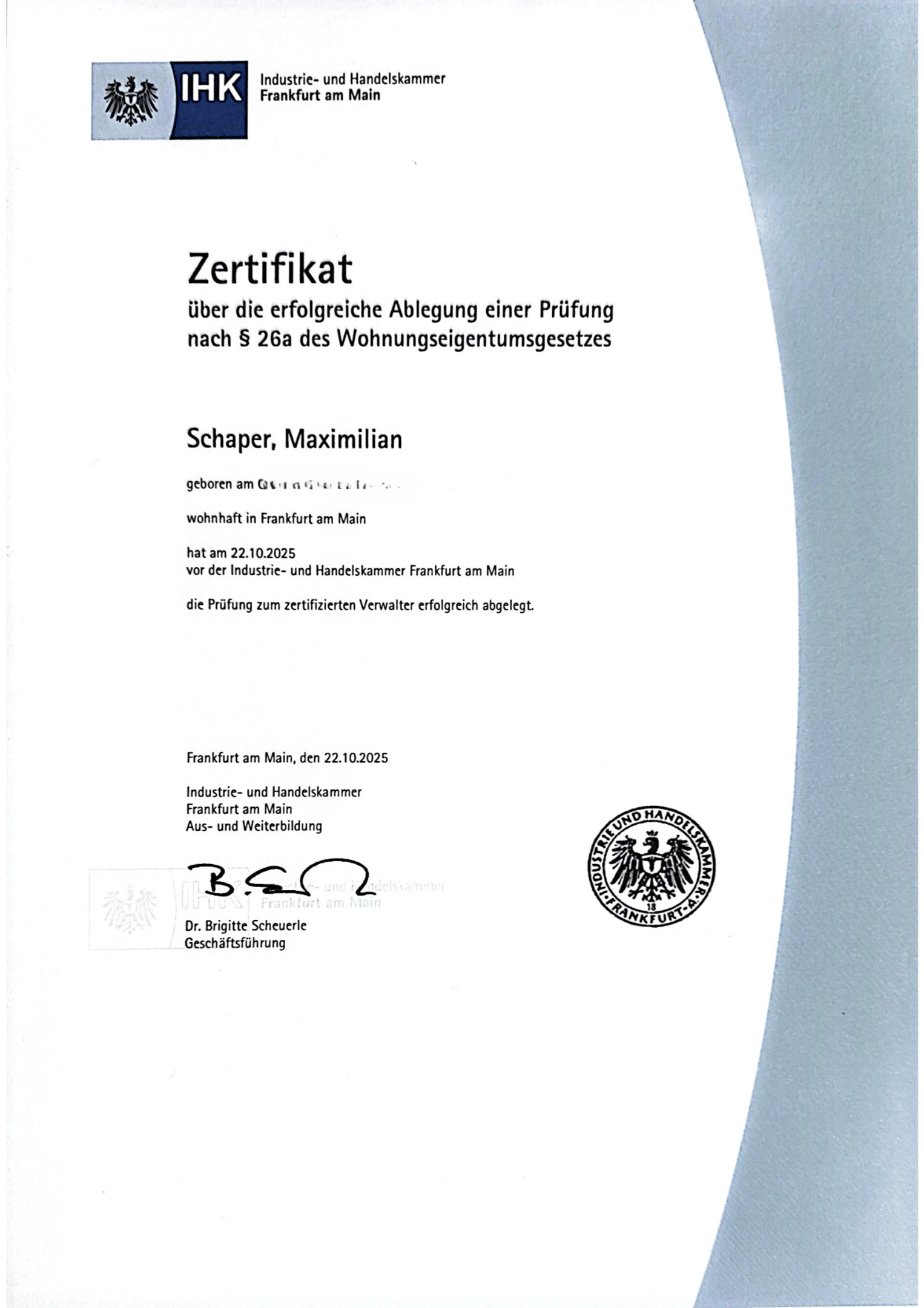 Unsere Verwalter sind zertifiziert nach §26a WEG mit jahrelanger Erfahrung in der profesionellen WEG- und Mietverwaltung